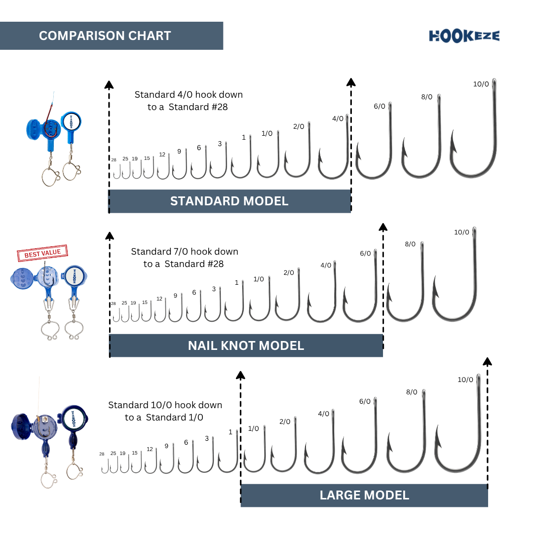 Available in three sizes to accommodate all types of fishing, from freshwater lakes to saltwater oceans, HookEze is built from durable stainless steel fittings, fit for any angler’s needs.