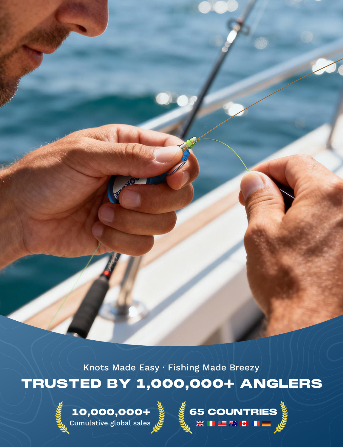 Designed for anglers of all skill levels, This innovative tool makes tying treble hooks, lures, and swivels quick, consistent, and completely safe.